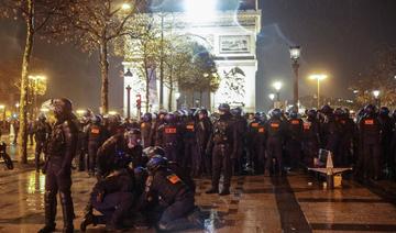 Sur la grande avenue des Champs-Elysées, des forces de l'ordre, visées par des jets de bouteille et des feux d'artifice, ont fait usage de gaz lacrymogènes