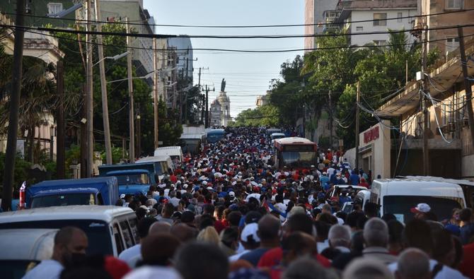 LA HAVANE: Le président cubain Miguel Diaz-Canel a dénoncé samedi le "mensonge" autour des troubles survenus sur l'île, lors d'un meeting de "réaffirmation révolutionnaire" aux côtés de Raul Castro et face à des dizaines de milliers de ses partisans à La Havane.