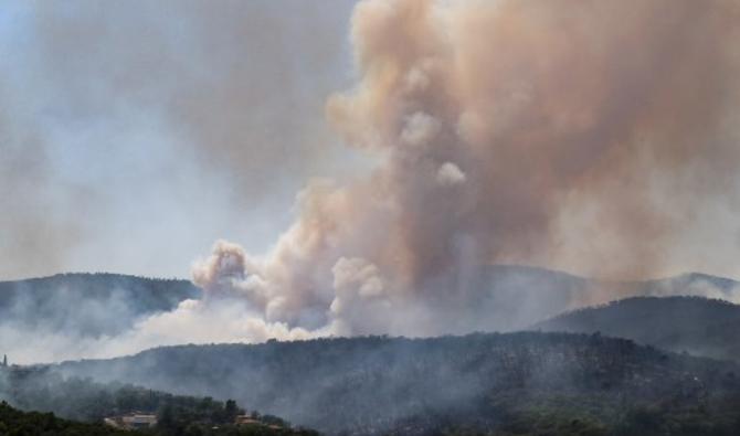 Des incendies de forêt font rage dans le département du Var, dans la région Provence-Alpes-Côte d'Azur, dans le sud-est de la France, le 17 août 2021. (Valéry Hache/AFP)