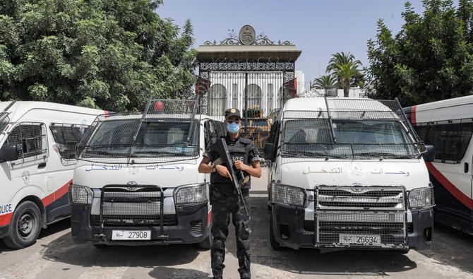 Un membre des forces de sécurité tunisiennes monte la garde devant le siège du parlement au Bardo à Tunis le 31 juillet 2021. (Photo, AFP)