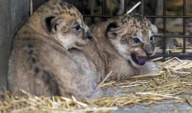 Cette photographie prise le 9 septembre 2021 montre deux lionceaux, nés le 22 août, au zoo d'Amnéville (nord-est) (Photo, AFP)