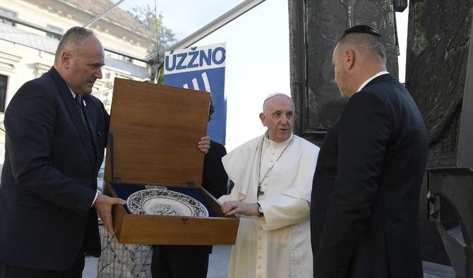 Le pape venait d'écouter gravement le témoignage d'un survivant né en 1942 et qui n'a pas souvenir de ses parents disparus, lors d'une rencontre sur la place Rybne, dans un quartier traditionnel juif de Bratislava, où se trouvait autrefois une imposante synagogue démolie en 1969 par le gouvernement communiste pour faire place à un pont routier.