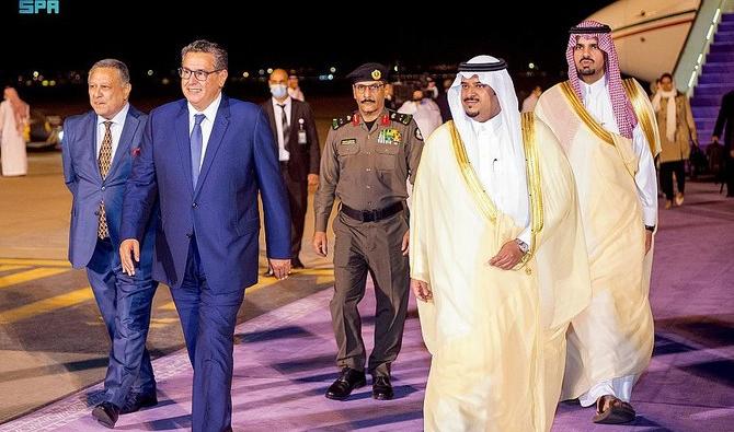 Le chef du gouvernement marocain, Aziz Akhannouch, arrive à l’aéroport international de Riyad, le dimanche 24 octobre 2021. (SPA)