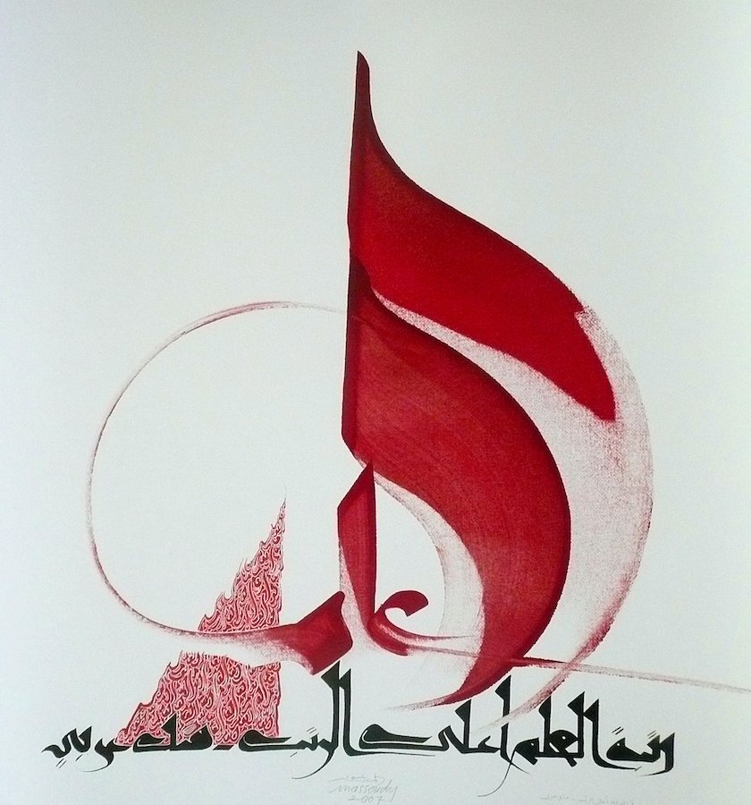 Réputé pour transformer des poèmes en œuvres d'art vibrantes, Massoudy a peut-être rompu avec la tradition calligraphique classique, mais ses phrases sont parsemées de références aux anciens maîtres. À Istanbul, il a rencontré Hamid Aytaç, le dernier des grands calligraphes ottomans, et a étudié pendant une brève période à l’école Madrasat Tahsin Al Khotoout au Caire. En tant qu'apprenti à Bagdad, il a passé des heures avec Hachem Al-Baghdadi, considéré comme le dernier calligraphe classique.