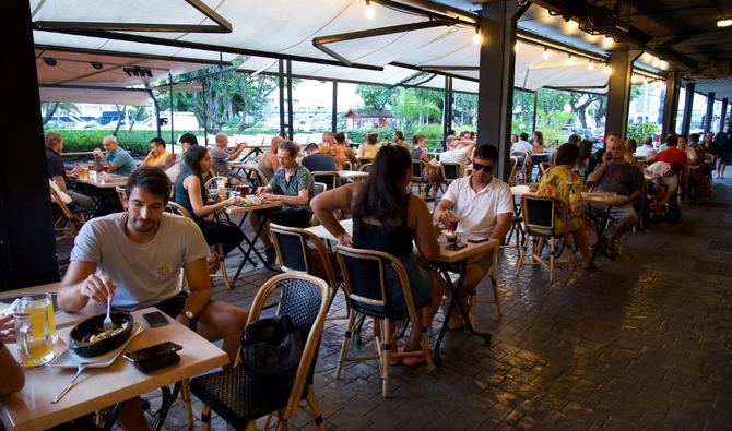 Les gens s'assoient aux tables d'un restaurant à Papeete, en Polynésie française, après l'assouplissement du confinement dû à la pandémie de Covid-19, le 23 septembre 2021. (Photo, AFP)