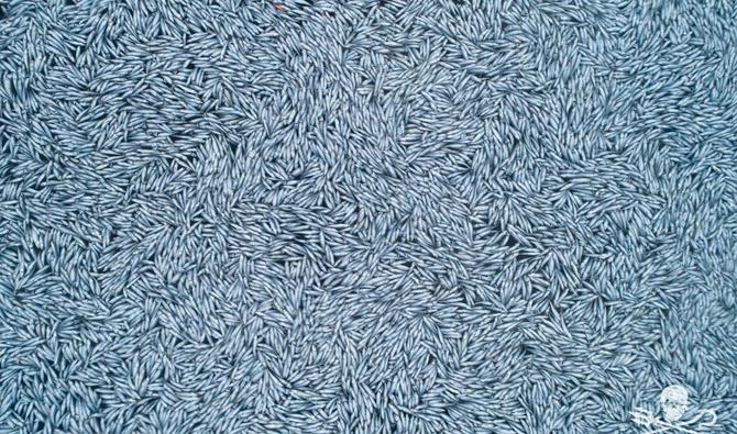 Une photo mise à disposition par Sea Shepherd le 4 février 2022 montre quelques-uns des 100 000 merlus bleus morts qui ont été jetés le 3 février à la mer, au large de La Rochelle, dans l'ouest de la France.(AFP)