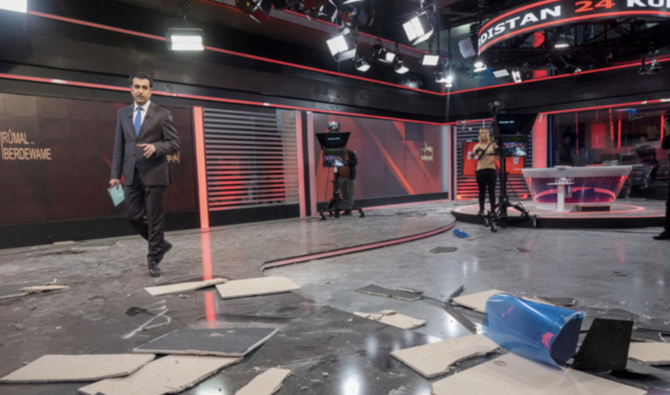 La chaîne de télévision Kurdistan24, qui se situe près du consulat américain, a publié sur les réseaux sociaux des images de ses bureaux endommagés. On y voit notamment des plafonds effondrés et des vitres brisées.