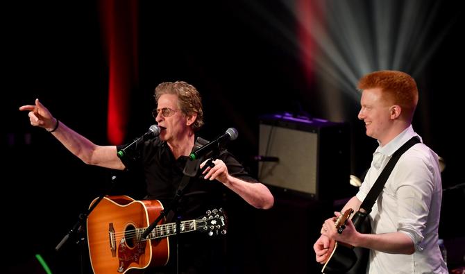 Il enchaîne ensuite « la fille du coupeur de joint », cette fois à la guitare, au côté de l'autre tête d'affiche de la soirée: le chanteur Hubert-Félix Thiéfaine, venu en « ami ».