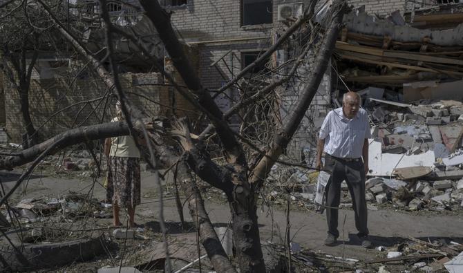 Un homme âgé passe devant un bâtiment détruit à Sloviansk, le 29 juillet 2022, en Ukraine (Photo, AFP).