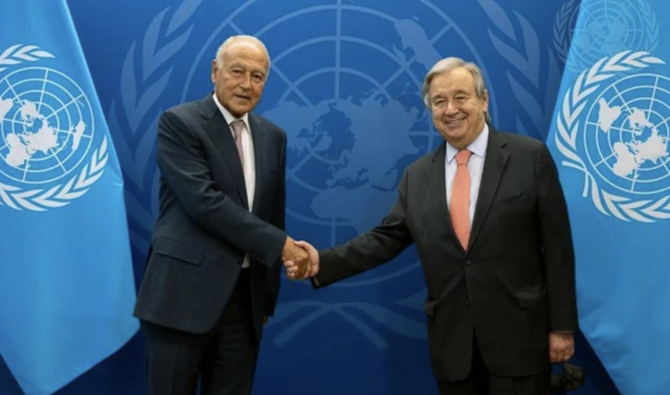 LE CAIRE: La cause palestinienne faisait partie des sujets abordés lors de la rencontre qui s’est tenue mercredi entre Ahmed Aboul Gheit, secrétaire général de la Ligue des États arabes, et Antonio Guterres, secrétaire général de l’ONU, en marge de la 77e session de l’Assemblée générale de l’ONU.