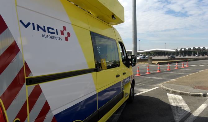 Un véhicule d'intervention de Vinci Autoroutes roule sur l'autoroute A 10 près du péage de Saint-Arnoult-en-Yvelines, le 11 juillet 2019. (AFP/ERIC PIERMONT)