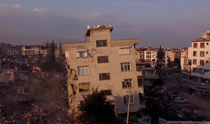 Une photo aérienne montre des bâtiments effondrés à Antakya le 12 février 2023, après qu'un tremblement de terre de magnitude 7,8 a frappé le sud-est du pays plus tôt dans la semaine. (Photo, AFP)