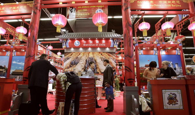 Sur cette photo d'archive, des personnes visitent le stand de la Chine le 17 mars 2005 au parc des expositions de la Porte de Versailles à Paris, lors du Salon mondial du tourisme. (Archives/AFP).
