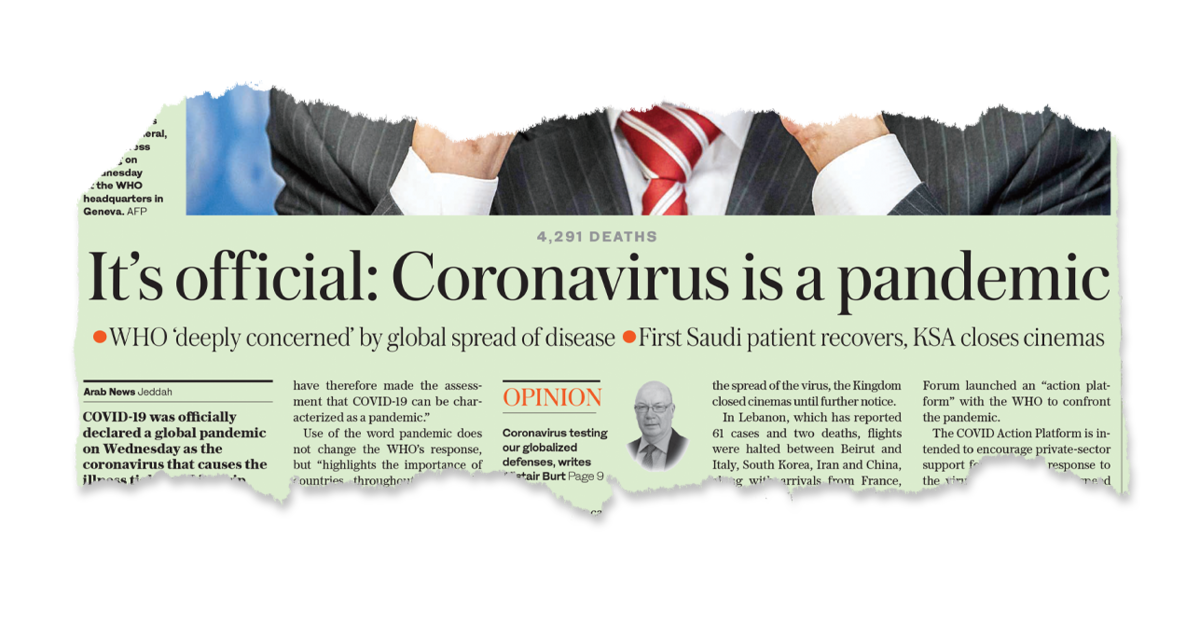 Le 11 Mars 2020, plus de deux mois après l’identification par la Chine d’un virulent et meurtrier nouveau coronavirus, et alors que 114 pays comptent déjà des cas multiples d’infection, l’Organisation mondiale de la Santé déclare enfin que le monde fait face à une pandémie à une échelle inédite depuis plus d’un siècle.