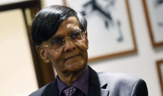 Le spécialiste du climat Mohan Munasinghe pose le temps d’une photo. (AFP)