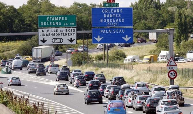Des véhicules sont bloqués dans un embouteillage sur l'autoroute A6 près de Palaiseau, en banlieue sud de Paris (Photo, AFP).
