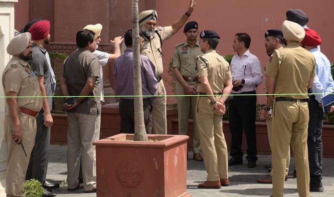 Le directeur général de la police du Pendjab, Gaurav Yadav (au centre), inspecte le site d'une autre explosion à Heritage Street à Amritsar, le 8 mai 2023. (AFP)