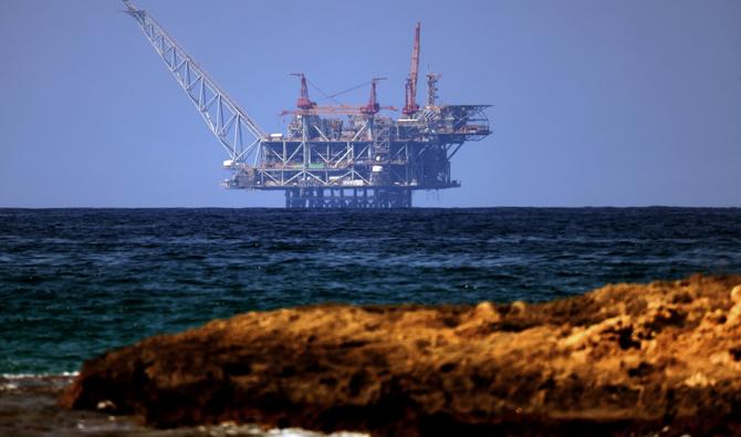 Une vue de la plate-forme du champ de gaz naturel Leviathan dans la mer Méditerranée est photographiée depuis la plage de Nasholim, sur la côte nord d'Israël, le 29 août 2022. (Photo, AFP)