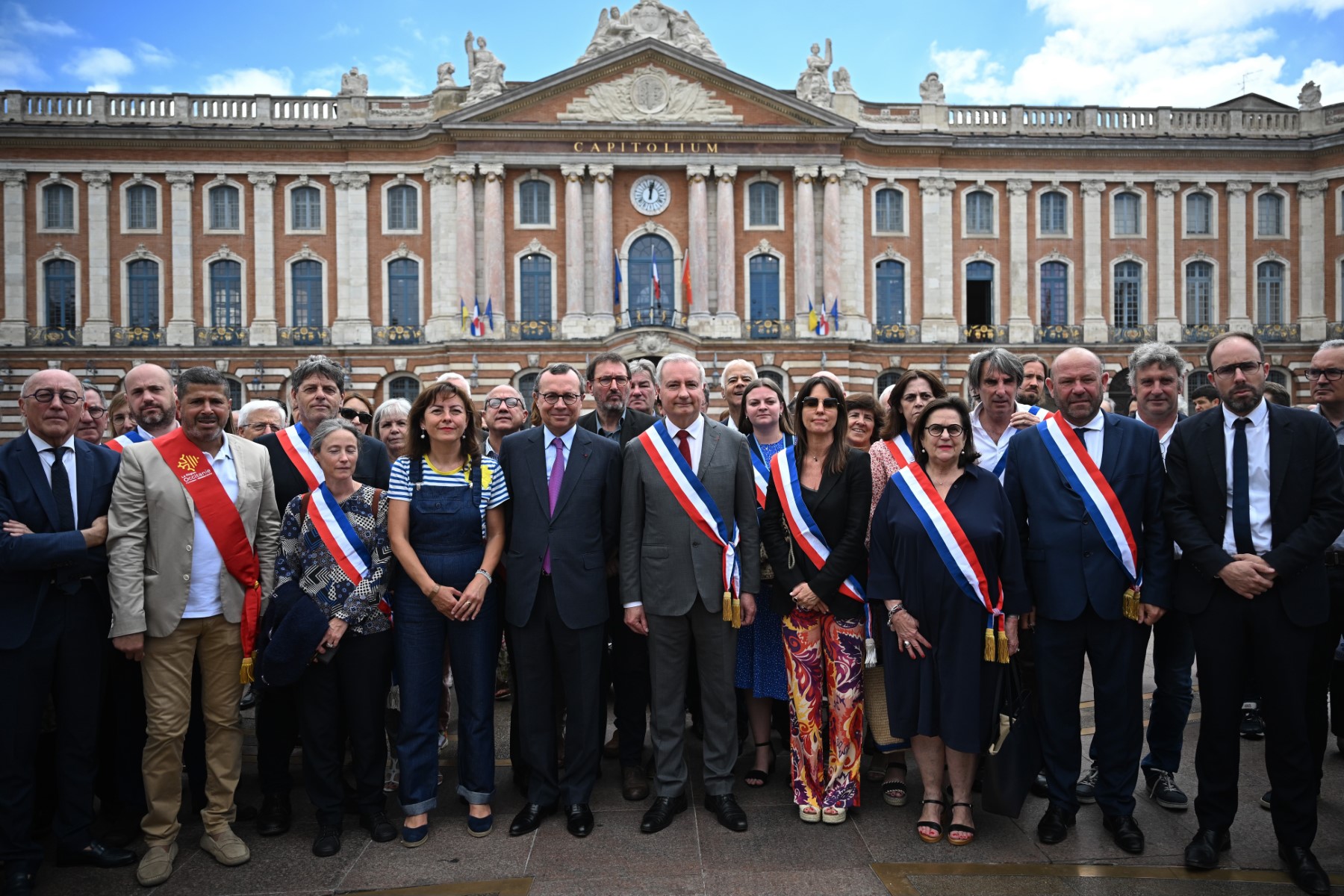 Le maire de Toulouse Jean-Luc Moudenc (C) pose avec des participants lors d'une action nationale à Toulouse, dans le sud de la France, le 3 juillet 2023 (Photo, AFP).