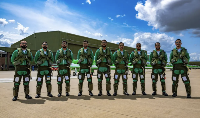 La patrouille acrobatique Falcons d’Arabie saoudite est arrivée au Royaume-Uni pour participer à l’édition 2023 de l’exposition Royal International Air Tattoo. (Agence de presse saoudienne)