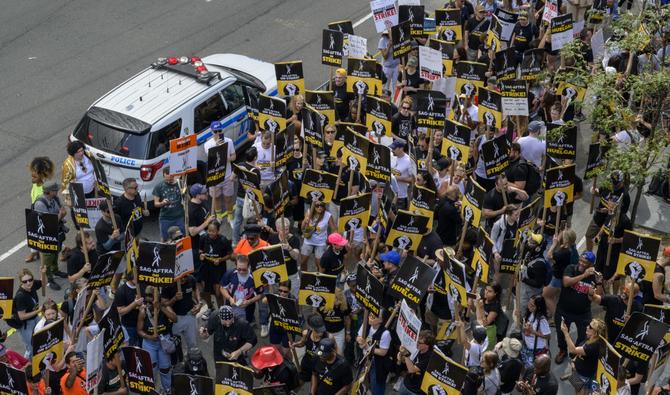 NEW YORK: Des centaines de professionnels de l'industrie américaine du cinéma et de la télévision ont manifesté mardi à New York, dans l'unité syndicale au pied des géants Amazon et HBO, pour exiger de meilleures conditions de travail et la sécurité de l'emploi, face à la menace de l'intelligence artificielle.