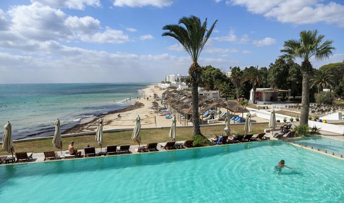Un touriste nage dans une piscine d'un hôtel de la station balnéaire tunisienne de Hammamet, à environ 66 kilomètres au sud de la capitale Tunis, le 7 octobre 2021 (Photo, AFP).