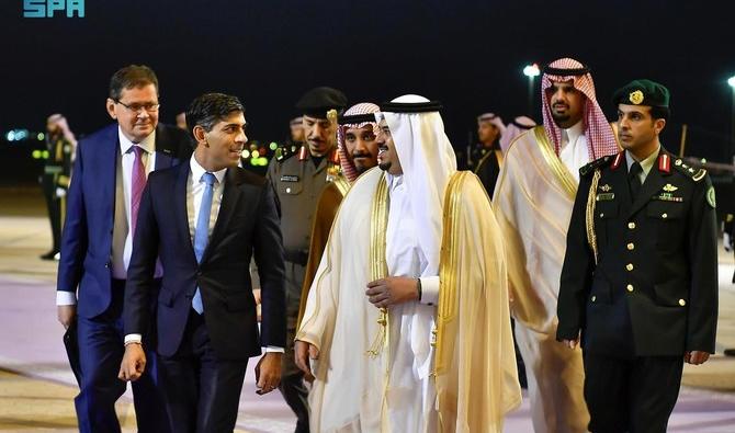 RIYAD: Le Premier ministre britannique, Rishi Sunak, est arrivé jeudi à Riyad et s'est entretenu avec le prince héritier d’Arabie saoudite, Mohammed ben Salmane.