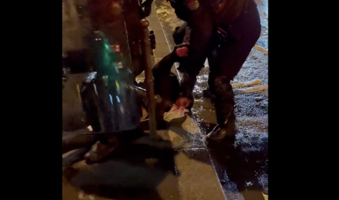 Dans une scène filmée lors de la manifestation propalestinienne à Paris, le 19 octobre, on voit des CRS faire cercle pour protéger leurs collègues qui plaquent au sol et menottent dans le dos un jeune homme portant une barbe courte et des baskets blanches. Sous la pluie, un CRS lui appuie du genou le visage contre le trottoir. Le jeune homme crie, gémit, « laissez-moi ! » tandis que les CRS se démènent autour de lui et que des manifestants leur signifient « Ce n’est pas réglementaire ! C’est interdit ce que vous faites ! ». « Ils l’ont attrapé, ils l’ont giflé, il (n’avait pas commis) de violence, rien du tout » commente une femme. « Monsieur, il a mal ! insiste-t-elle, avant que le groupe de témoins ne soit dispersé de force.