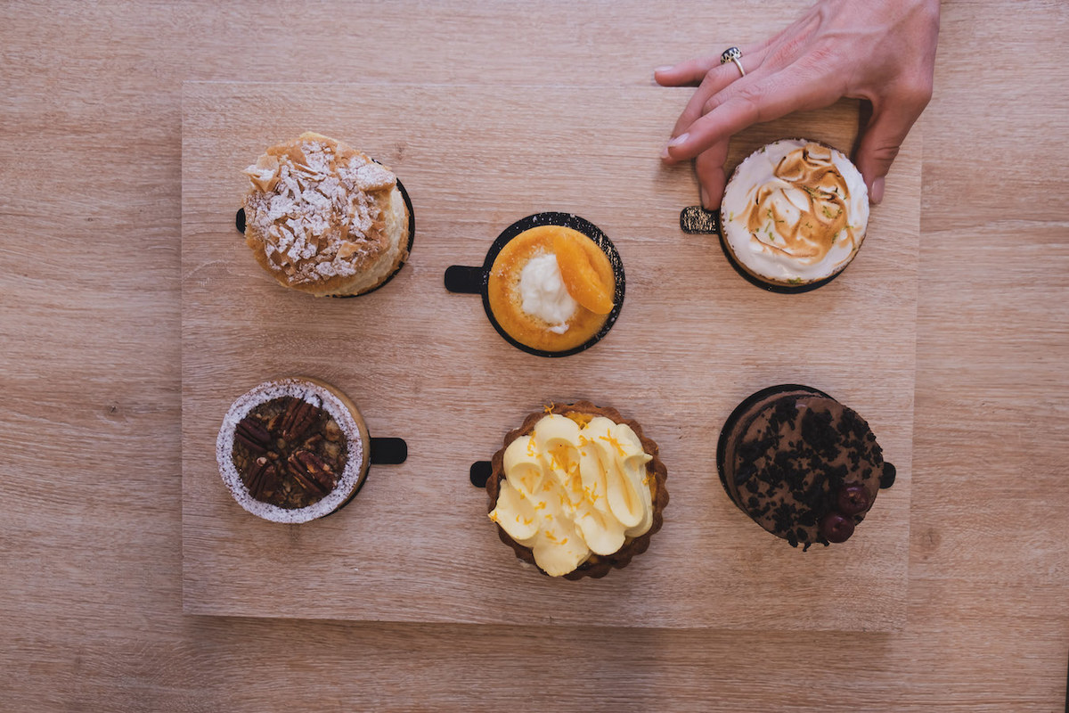 D’autres options novatrices incluent des petits pains au zaatar et à la feta, des pâtisseries mélangeant chocolat et cardamome, ainsi qu’un biscuit au tahini, pour lequel il utilise la technique française classique du beurre fondu pour ajouter «une saveur plus profonde».