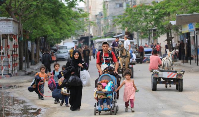 De nombreux Palestiniens, pour la plupart déjà déplacés plusieurs fois par la guerre, continuent de fuir Rafah, emportant leurs affaires sur leurs épaules, dans des voitures ou sur des charrettes tirées par des ânes.