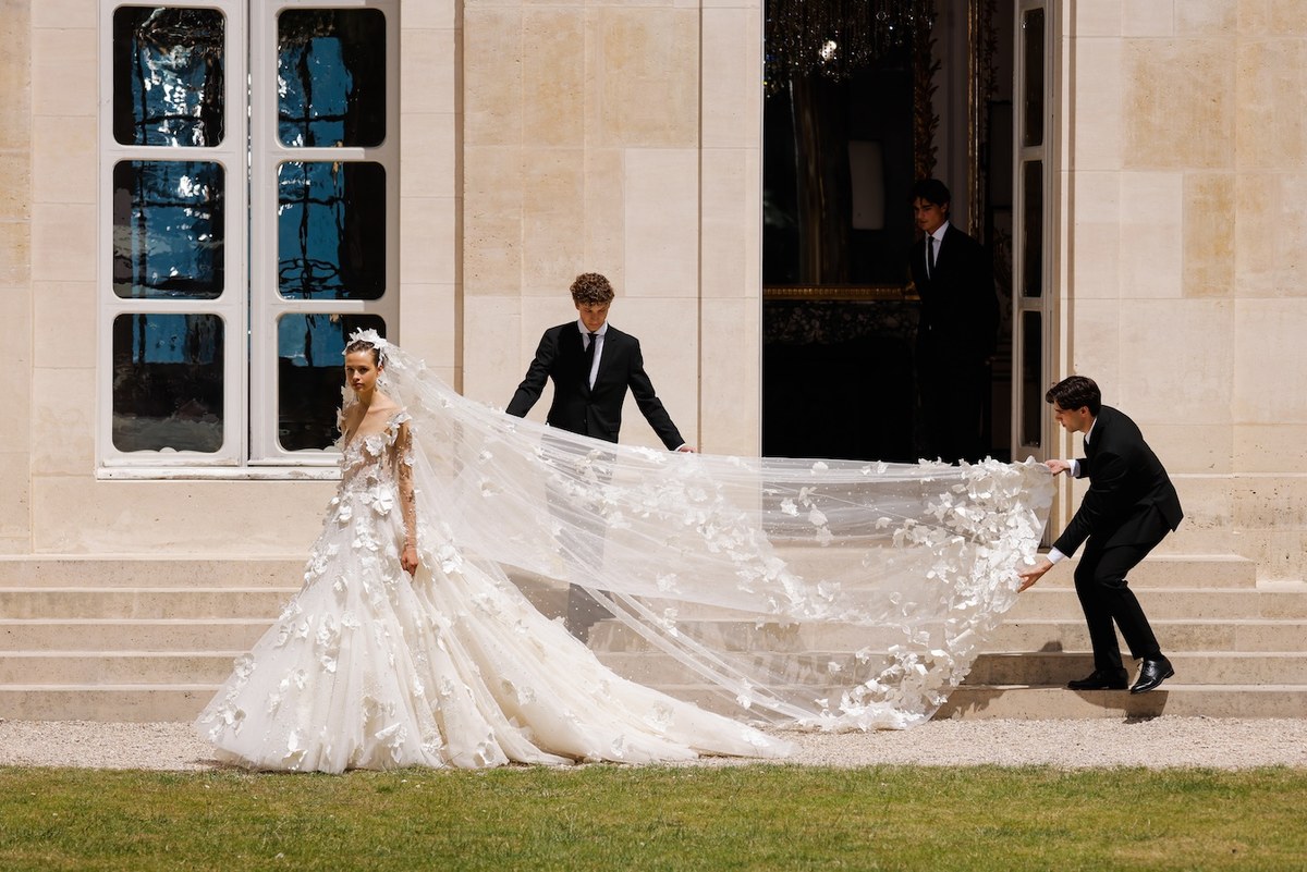 Sur le podium, de nombreux styles ont défilé, notamment des costumes brodés et surdimensionnés, des robes ornées de détails à franges et des robes en tulle transparent ornées de dentelle. Certaines robes avaient des manches majestueuses et élégantes, tandis que d’autres avaient des capuches ou étaient couvertes de paillettes et scintillaient. Il y avait aussi des traînes, des capes et des manteaux spectaculaires, ainsi que toutes sortes de décolletés.