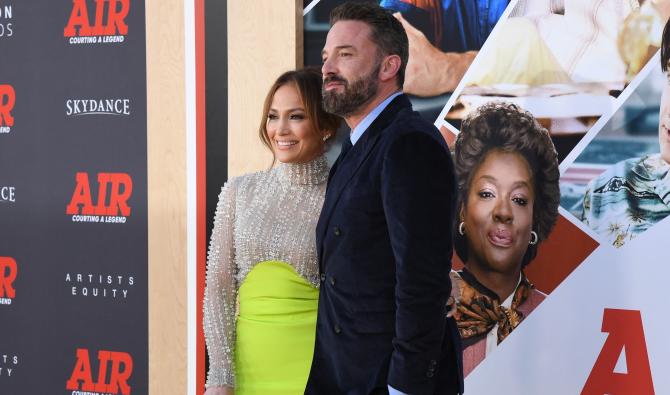 Jennifer Lopez et Ben Affleck assistent à la première mondiale de "AIR" organisée par Amazon Studios au Regency Village Theatre le 27 mars 2023 à Los Angeles, Californie. (AFP)