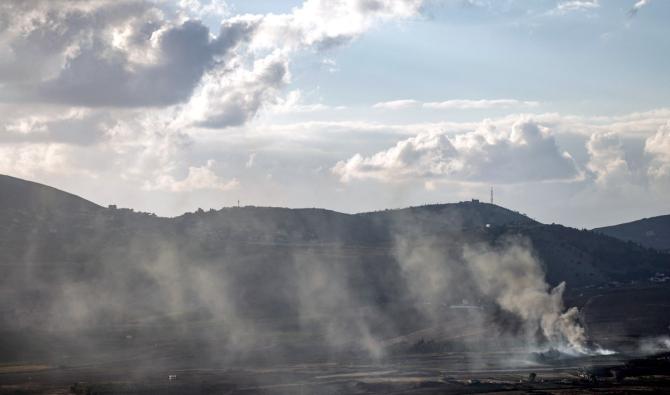 Cette photo prise en Israël le long de la frontière avec le Sud-Liban montre de la fumée s'élevant au-dessus du village libanais de Wazzani lors d'un bombardement israélien le 16 septembre 2024. (AFP)