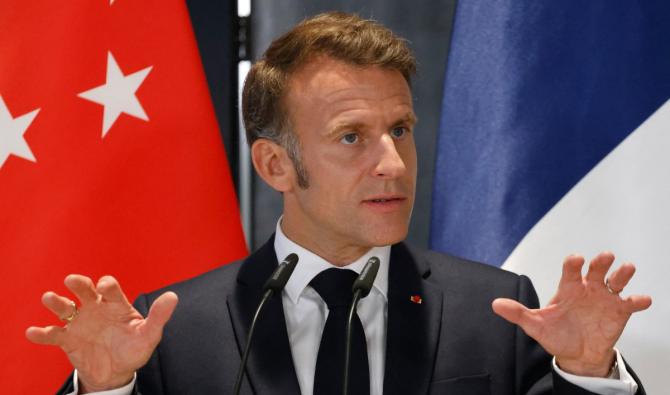 Lors d'une conférence de presse à Singapour, Emmanuel Macron a affirmé que les Européens devaient "durcir la position collective" contre Israël. (AFP)