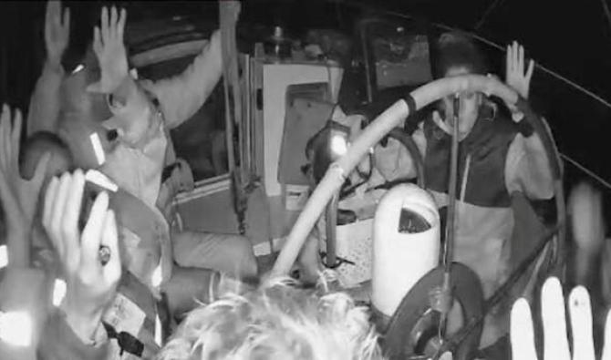Parmi les passagers qui étaient en cours de transfert vers un port israélien se trouve Greta Thunberg, que les autorités israéliennes ont montrée en train de récupérer des effets personnels, entourée par des hommes armés.