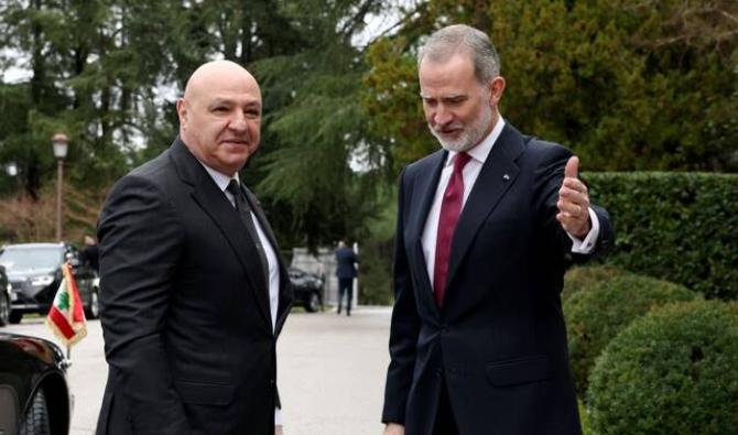 Au cours de cette visite, il a déclaré au Premier ministre espagnol Pedro Sanchez que le Liban "attache une grande importance" à la participation de l'Espagne à la conférence internationale prévue le 5 mars à Paris, qui vise à renforcer le soutien à l'armée libanaise et aux forces de sécurité intérieure.