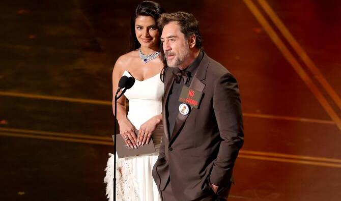 En pleine guerre au Moyen-Orient déclenchée par Donald Trump, le ton est resté globalement très sage, hormis le "non à la guerre, libérez la Palestine" lancé par Javier Bardem sur scène.