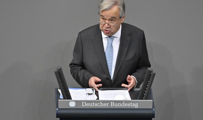Le secrétaire général des Nations Unies (ONU) Antonio Guterres s'exprime au Bundestag (chambre basse du parlement) le 18 décembre 2020 à Berlin. (AFP)