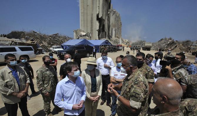Le sous-secrétaire d'État américain aux Affaires politiques David Hale et l'ambassadrice américaine au Liban Dorothy Shea, visitent le site de l'explosion du 4 août à Beyrouth, au Liban, le samedi 15 août 2020. (AP)