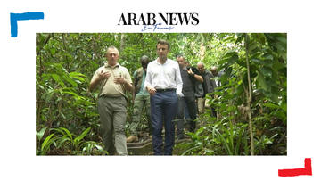 Le président français Macron en visite dans un arbortum au Gabon